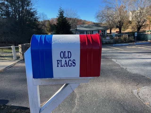American Legion Post 108 offers a red, white, and blue-painted mailbox in which anyone can drop off old, folded flags so that they can be disposed of properly.