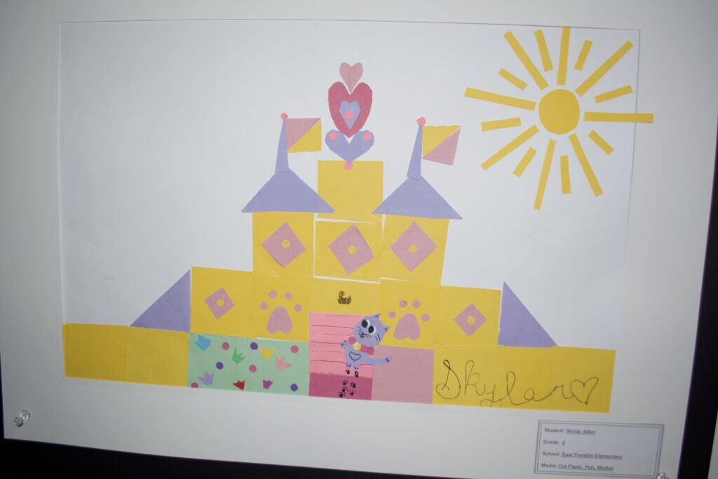 SKYLER ALLEN, a second grader at East Franklin Elementary School, was just one student out of 300 representing the Macon County School System whose work was chosen for the annual art show, which took place April 21 at the Macon County Public Library. Skyler’s art was created using cut paper, pen, and stickers.