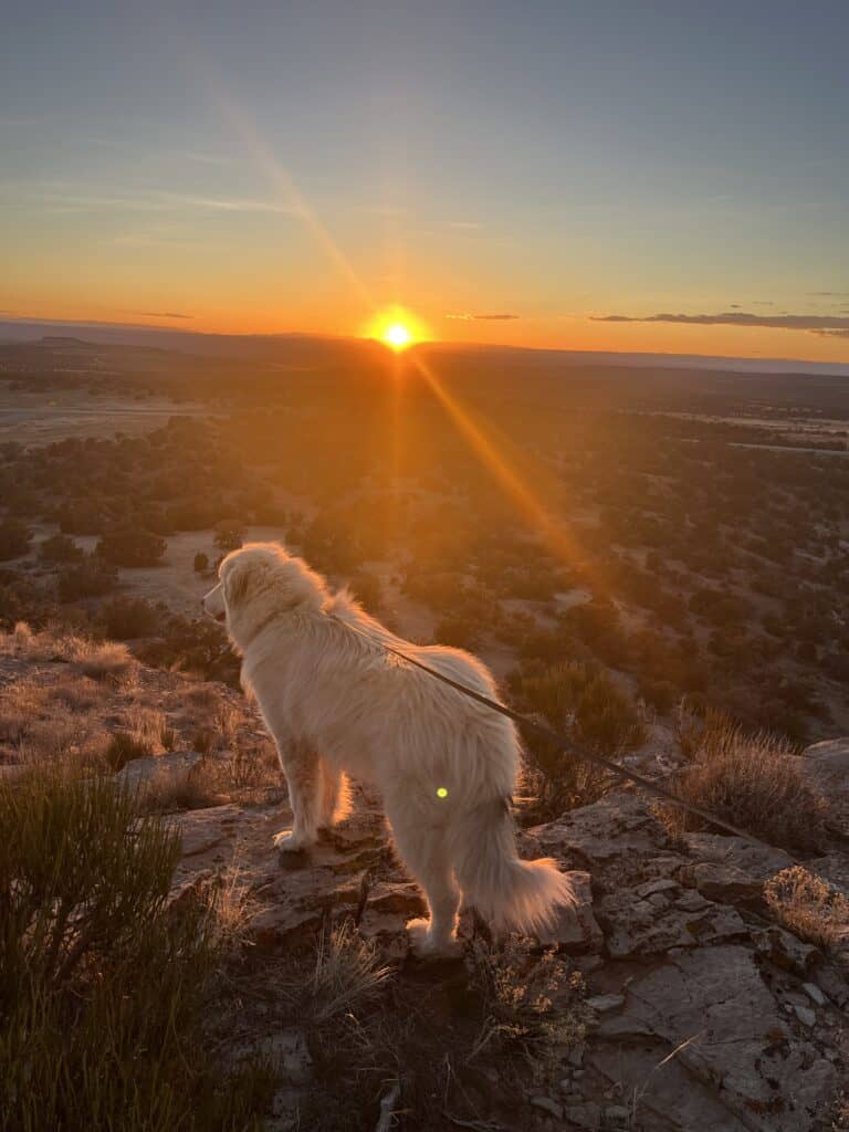 Mingo enjoyed it all, but especially areas where she could run, slide, and dig in both deep sand (Great Sand Dunes National Park) and snow (Black Canyon of the Gunnison National Park and Mesa Verde National Park). And, regularly exhibiting a wolf-like stance, she climbed to the top of buttes and mesas to regally look out upon the landscape.