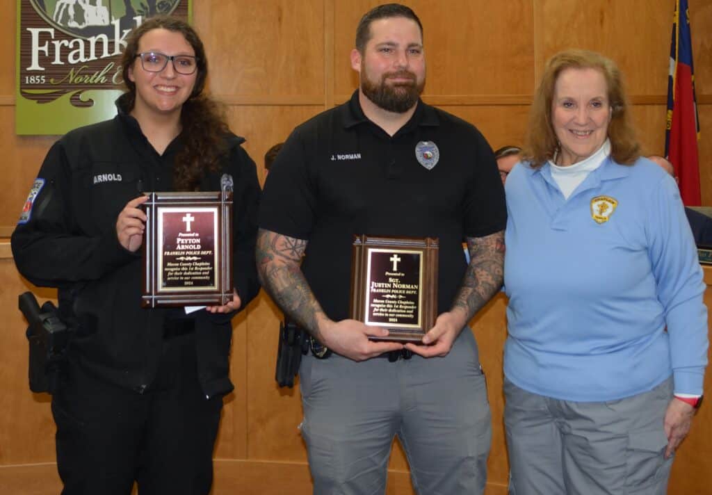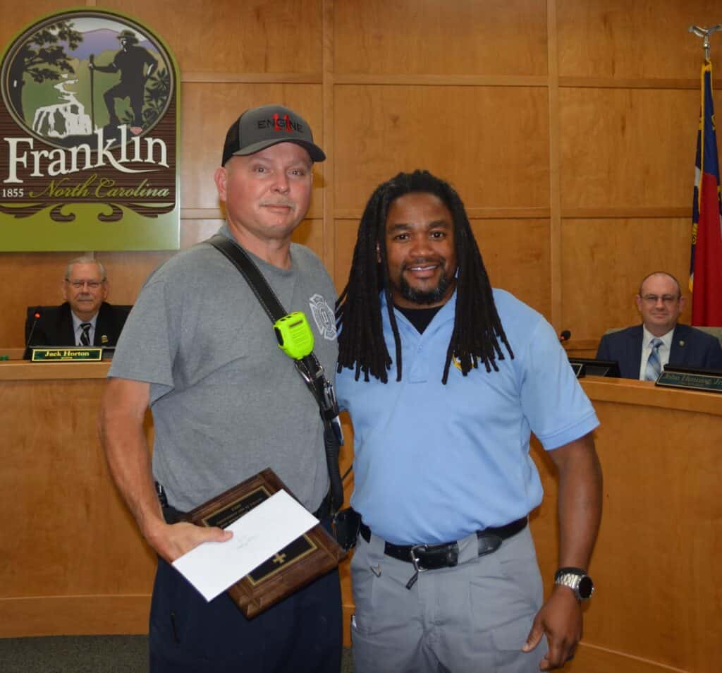 At the May 6 Town of Council meeting, individuals recognized were Franklin Police Department’s 1st Sgt. Detective Justin Norman and Patrol Officer Peyton Arnold; and, Franklin Fire Department firefighters Dennis Carpenter and David Rush, and engineer Chuck Norton.