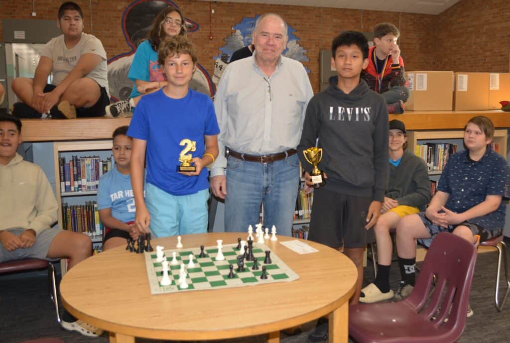 “I didn’t expect to even get this far,” said Levi, offering that his father and a cousin first sparked his interest in chess. “Mr. C. has been good about making time to help us with chess, but then he just leaves us to play the game and learn by playing.” Levi is passing on his growing knowledge of chess to his younger brother, Caleb, 10 years old, who attended East Franklin Elementary School this past year.