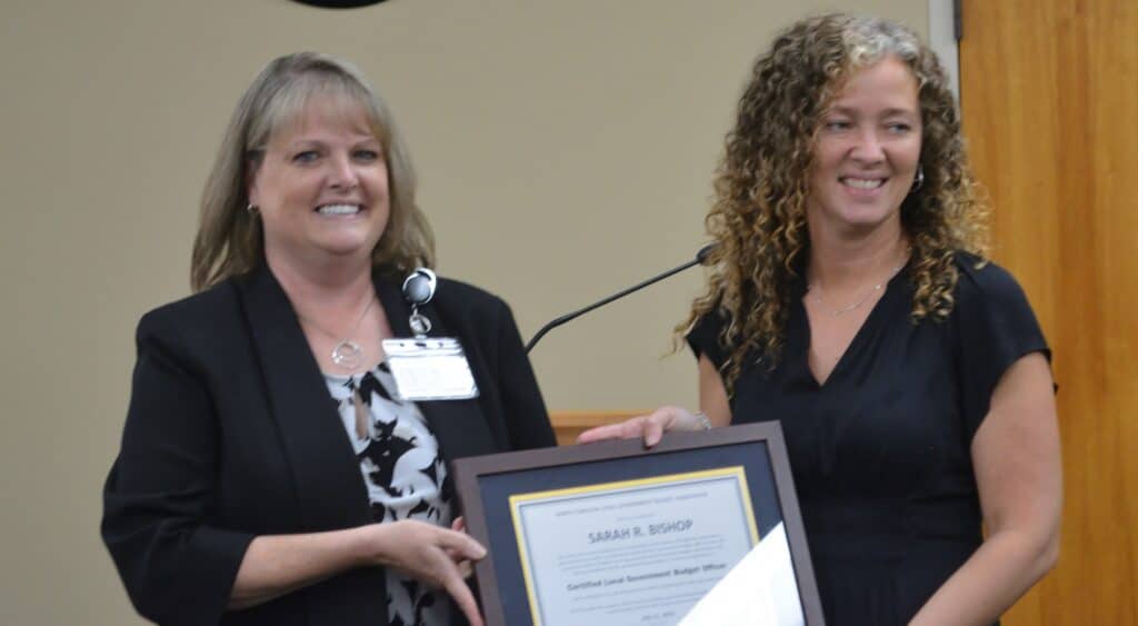 Earlier in the evening, Town Finance Officer Sarah Bishop, was recognized for achieving a Certified Local Government Budget Office Certification. She had to complete nine courses and three written exams to qualify for the certification, which she has been working toward since 2018.