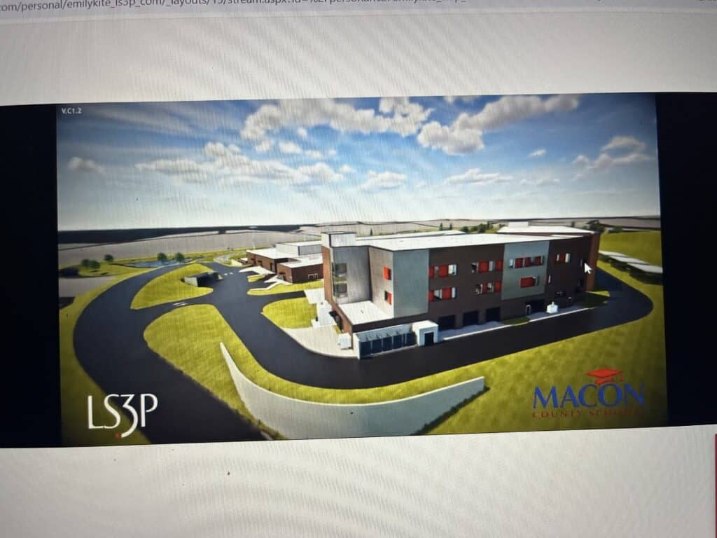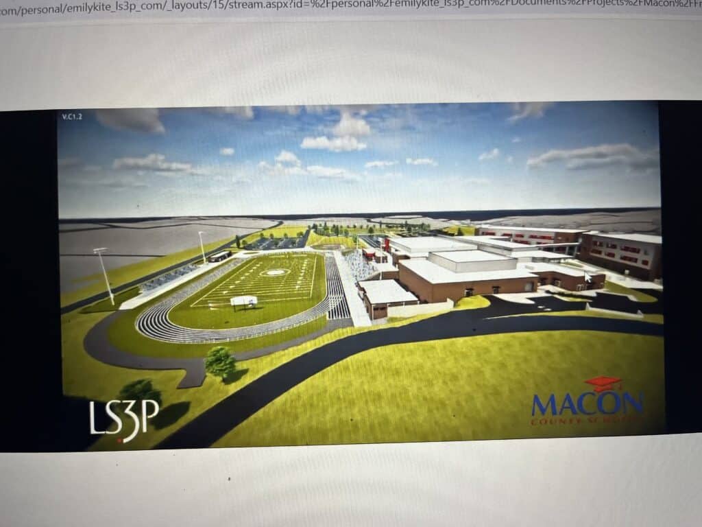 Macon County approved a resolution in July to set a public hearing for August to gather public comment on the proposed financing. Prior to the board meeting, County Manager Derek Roland provided an update to the new high school construction schedule. As a result of being bid out, which involves receiving plans from three or more companies, a guaranteed maximum price (GMP) was produced. Project Construction Manager at Risk, Carroll Daniel Construction, announced a certified GMP at just under $123 million for construction, bringing the overall price for the project to just under $135 million. Additional costs include interior furniture and infrastructure that will be needed within the newly constructed high school. The total price is under the originally approved budget of $137 million.