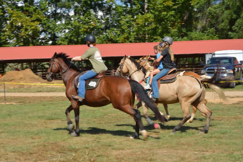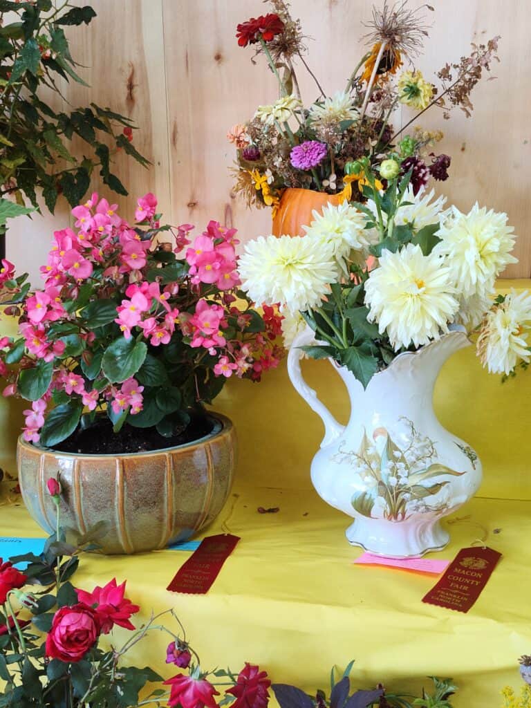 School students submitted artwork, quilters showed off their skills, and gardeners bought their best canned goods and preserves in hopes of being awarded a blue ribbon. Farmers young and old showed their best calves, hogs, goats, and chickens. On the last day of the fair, equestrians competed in the Macon County Horse Association Show.
