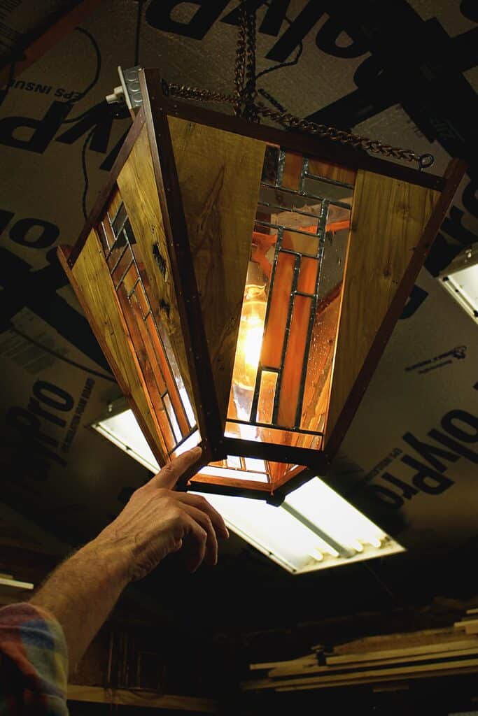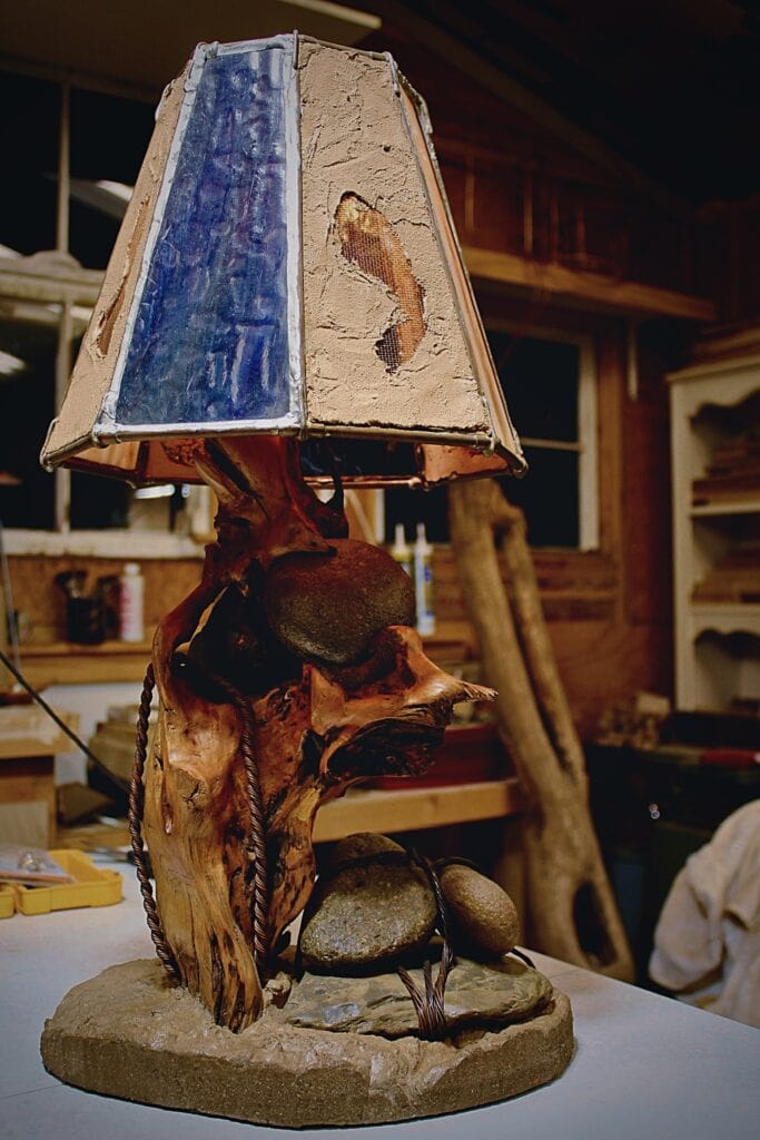 Selby does not outsource any of his work during the creation of his pieces. All the stained-glass and electrical work is custom made for each piece. Stained-glass was the most difficult skill he had to develop to complete his vision for lamps and chandeliers. With just a four-hour class and much self-regulated practice, he added custom stained-glass creation to his tool belt.