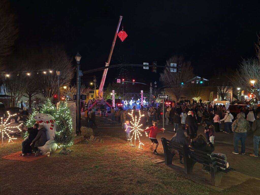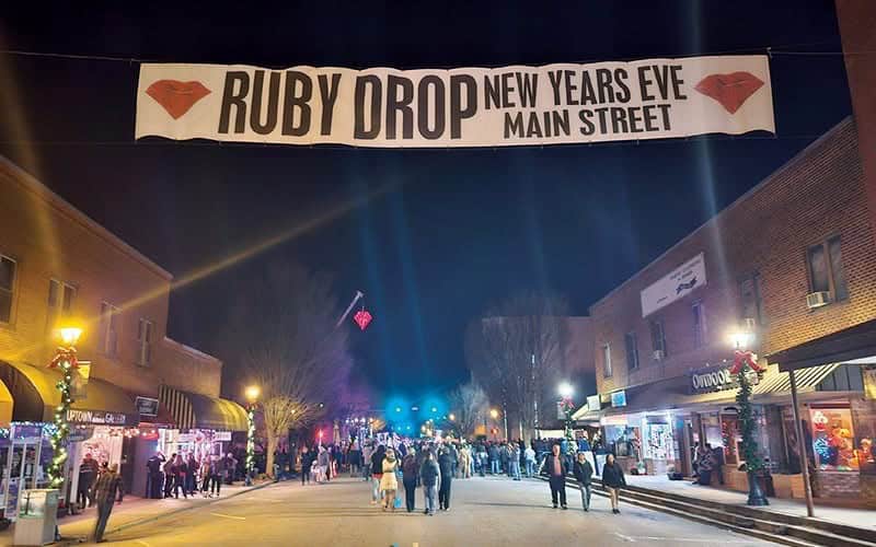 The 11th Annual New Year Ruby Drop ushered in 2025, courtesy of the many hours of set up involved by the Crabtree family, sponsors, and volunteers to ready downtown Franklin for the festivities, including hanging the heavy “ruby” from a crane.