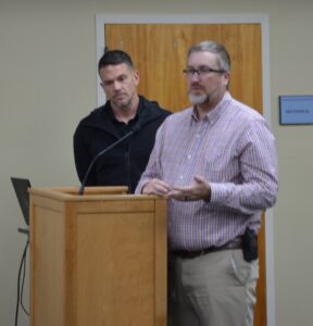 TOWN PLANNER Justin Setser along with business owner and former Macon County manager Derek Roland addressed the Town of Franklin Council on Monday, Jan. 6, regarding a district rezoning request.