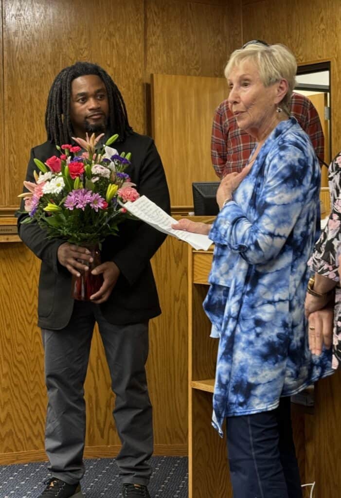Interim County Manager Warren Cabe, Commissioner Shields, and Commissioner Danny Antoine then called upon Reesa Boyce, the Center’s 91-year-old part-time Community Social Services Assistant, to recognize her extraordinary contributions to the county since 2014. Proving that age is no barrier, Boyce spoke about her work at the center.