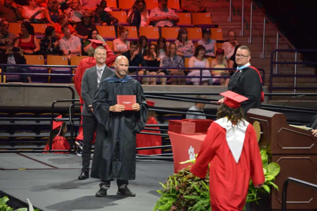BARTRAM ACADEMY Principal Brian Moffitt poses with graduate Jared Thompson.