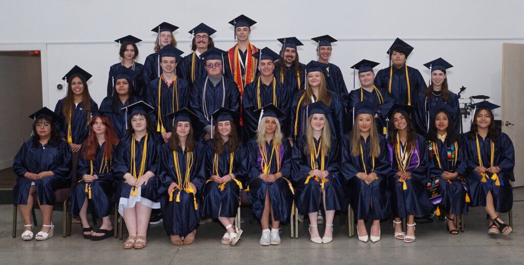 Class of 2025 graduates in caps and gowns at graduation event.