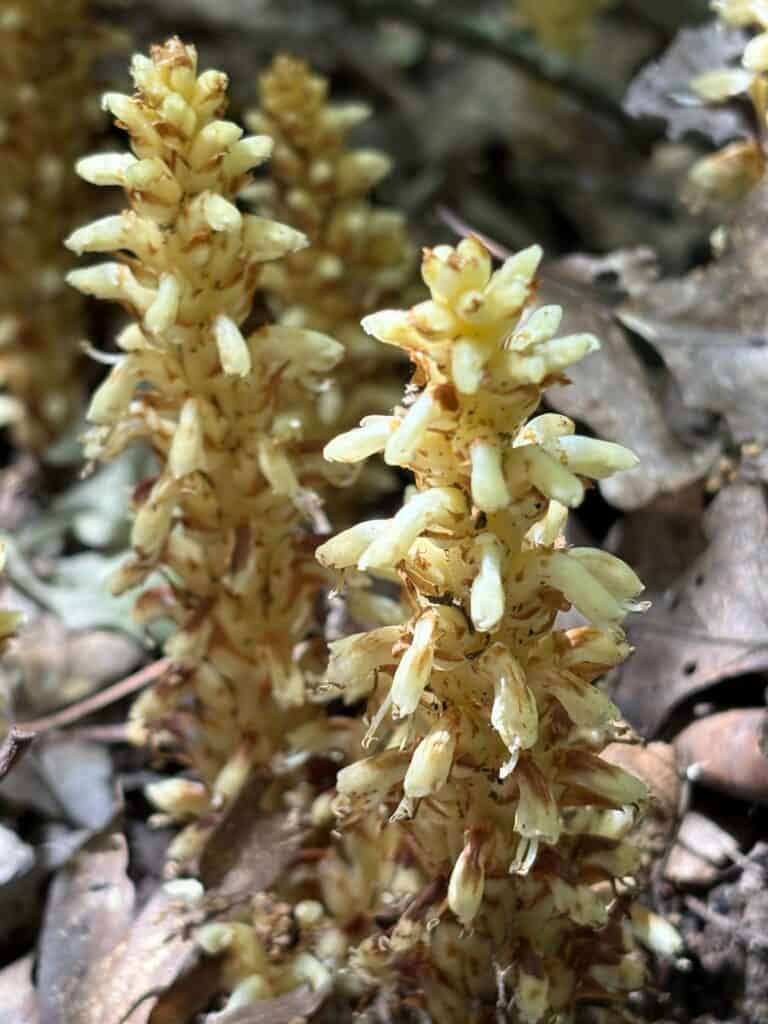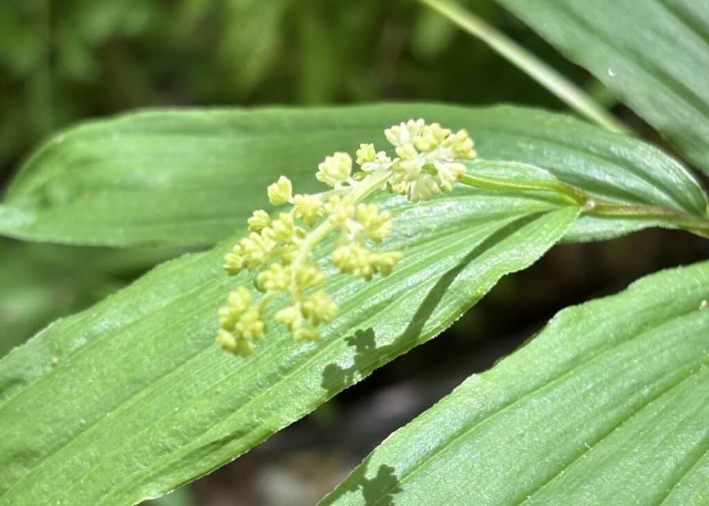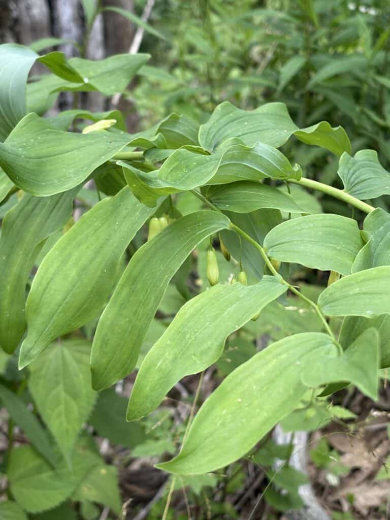 A few along the path included White Clintonia, a wide-leaf, lily-like plant with a long, straight stem and a dome cluster of small white flowers. Wild yam has large heart-shaped leaves, and the small roots can actually be eaten. Jack in the Pulpit resembles a slender vase with a flap over it, and Bear Corn looks like some sort of fungus growing up out of the ground but is actually a parasitic plant and is bitter to taste, but edible. Banack also explained how to distinguish between Solomon’s Seal and Fake Solomon’s Seal.