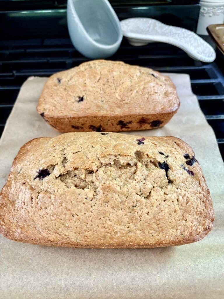 Here is the blueberry zucchini bread recipe I use. I am not sure where it originated. Blueberries are in season, so besides finding them at the farmers markets, they are at a few you-pick farms in Macon County as well as at local grocers and produce stands.