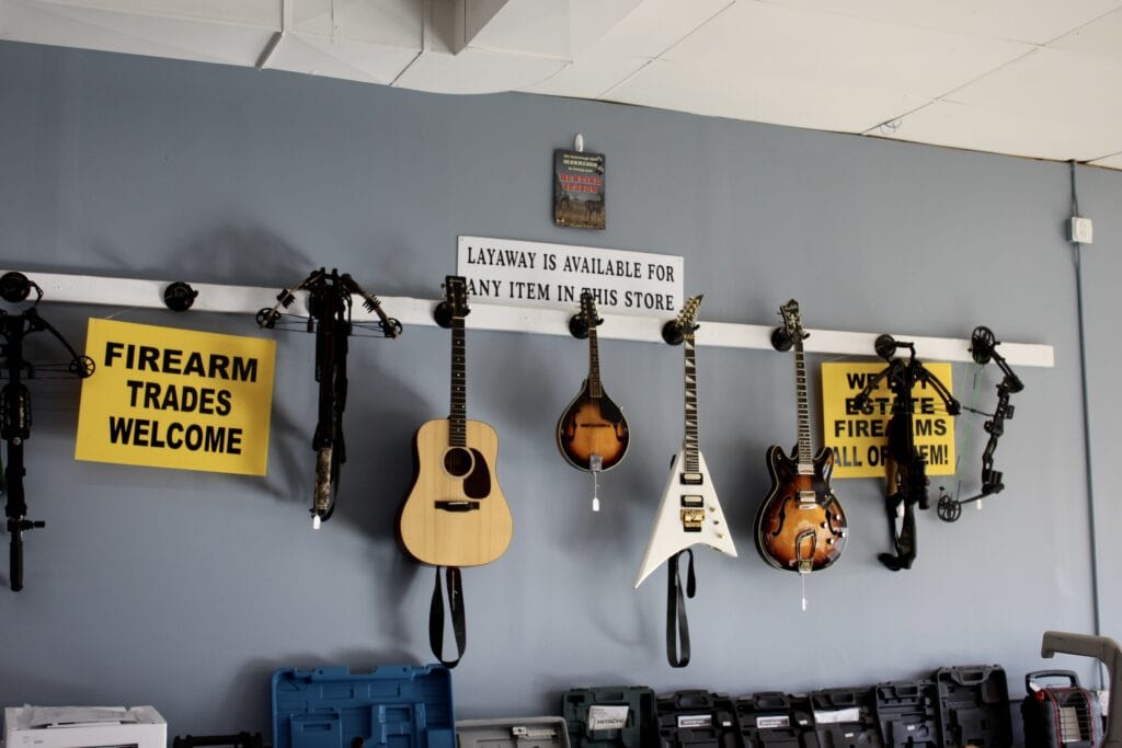 After moving, Steve explored business opportunities and settled on opening a gun store, later adding the pawn side. Eve explained, “You come in with an item, we give you a certain percentage of that item [in cash], and then you can come back to get it. Only take what you need so you don’t pay as much back.”