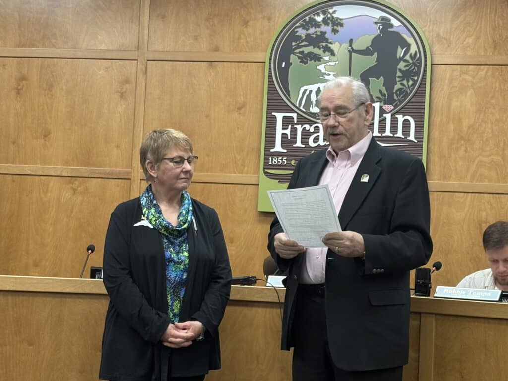 Town of Franklin Finance Director Sarah Bishop presented a resolution to the council for approval of a proposal from Webster Bank, N.A. (National Association). The loan, in the amount of $3.2 million-plus, will support the Clear Well and High Service Pump Station Project.