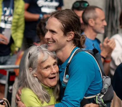Franklin native Canyon Woodward shared an embrace with his mother, Trish Severin, shortly after finishing the 2025 Ultra-Trail du Mont Blanc in Chamonix, France, on Aug. 30. The Ultra-Trail is a 174km (108-mile) race that draws the best trail runners in the world.