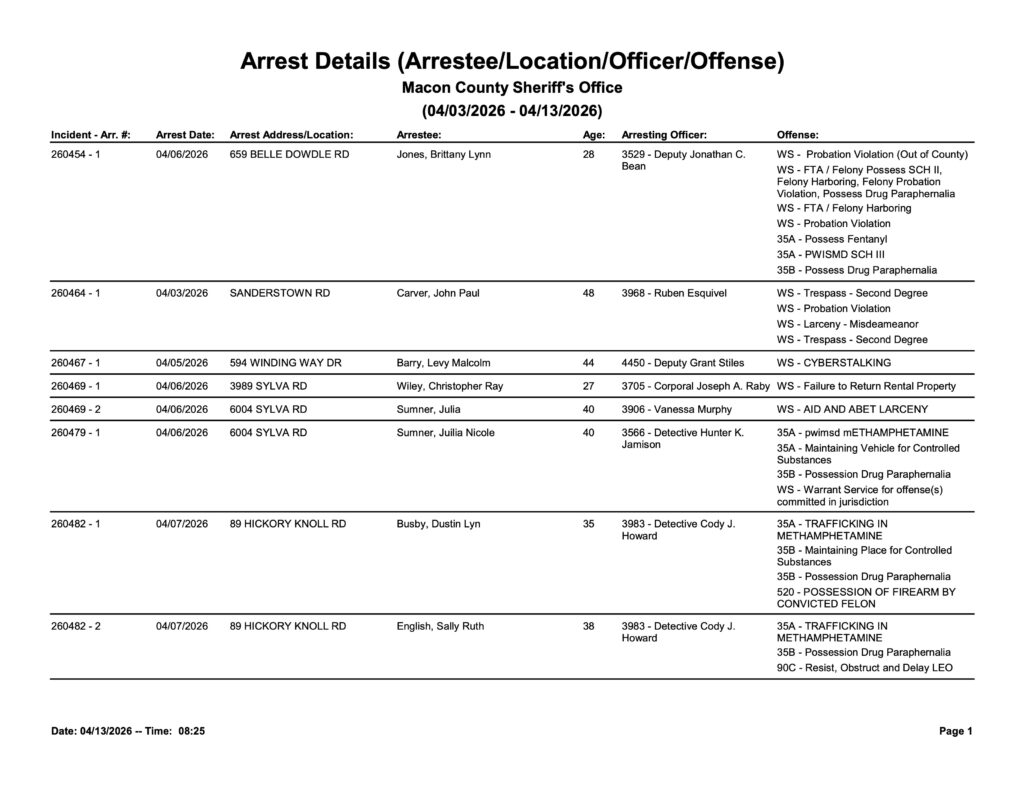 This week’s report includes cyber stalking, trespass, drug trafficking, registered sex offender, breaking and entering.